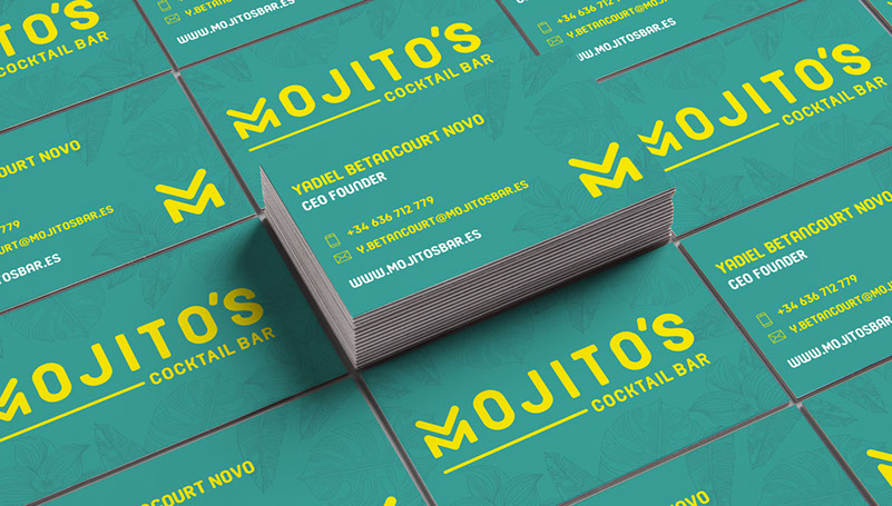 BRAND IDENTITY Creación y diseño de identidad corporativa para Mojito´s Cocktail Bar. Una nueva coctelería que te transporta al corazón de la Habana, ofreciéndote una amplia variedad de sabores y fusiones de del auténtico mojito cubano.