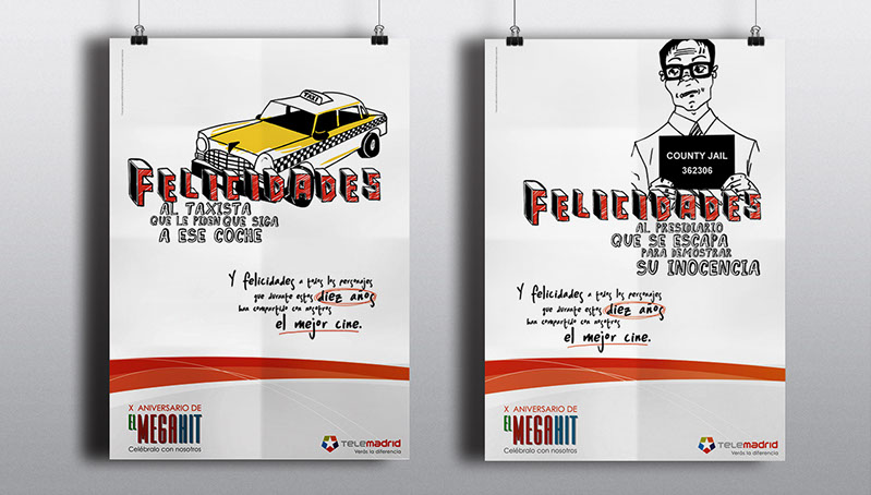 Ilustraciones realizadas para la agencia de publicidad Publicis España con motivo de anunciar el X Aniversario de El Megahit, programa especializado en cine de Telemadrid ILLUSTRATION Client: Publicis - Telemadrid