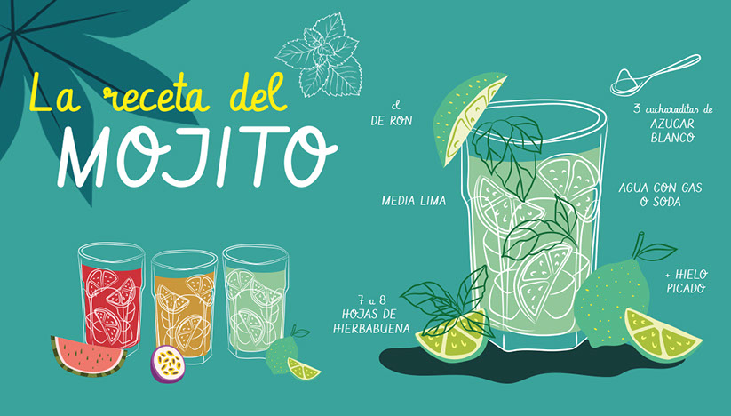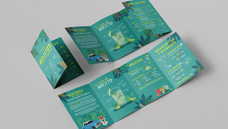 BRAND IDENTITY Creación y diseño de identidad corporativa para Mojito´s Cocktail Bar. Una nueva coctelería que te transporta al corazón de la Habana, ofreciéndote una amplia variedad de sabores y fusiones de del auténtico mojito cubano.