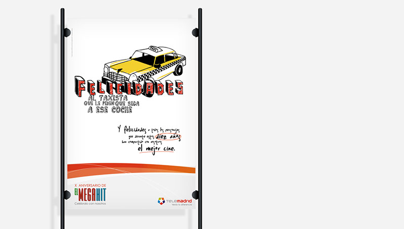 Diseños e ilustraciones realizadas para la agencia de publicidad Publicis España con motivo de anunciar el X Aniversario de El Megahit, programa especializado en cine de Telemadrid. ART DIRECTION & ILLUSTRATION Client: Publicis - Telemadrid